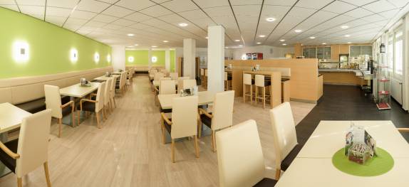 Heiße und kalte Getränke sowie kleine Snacks erhalten Sie rund um die Uhr an den Automaten im Erdgeschoss, schräg gegenüber den Bettenaufzügen.